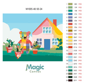 Join Sunny Bear on a garden adventure! This colorful paint-by-numbers kit invites kids to paint a cheerful blue sky, blooming plants, and a playful bear exploring outside. Sunny Bear’s Garden Adventure sparks creativity and brings every brushstroke to life!